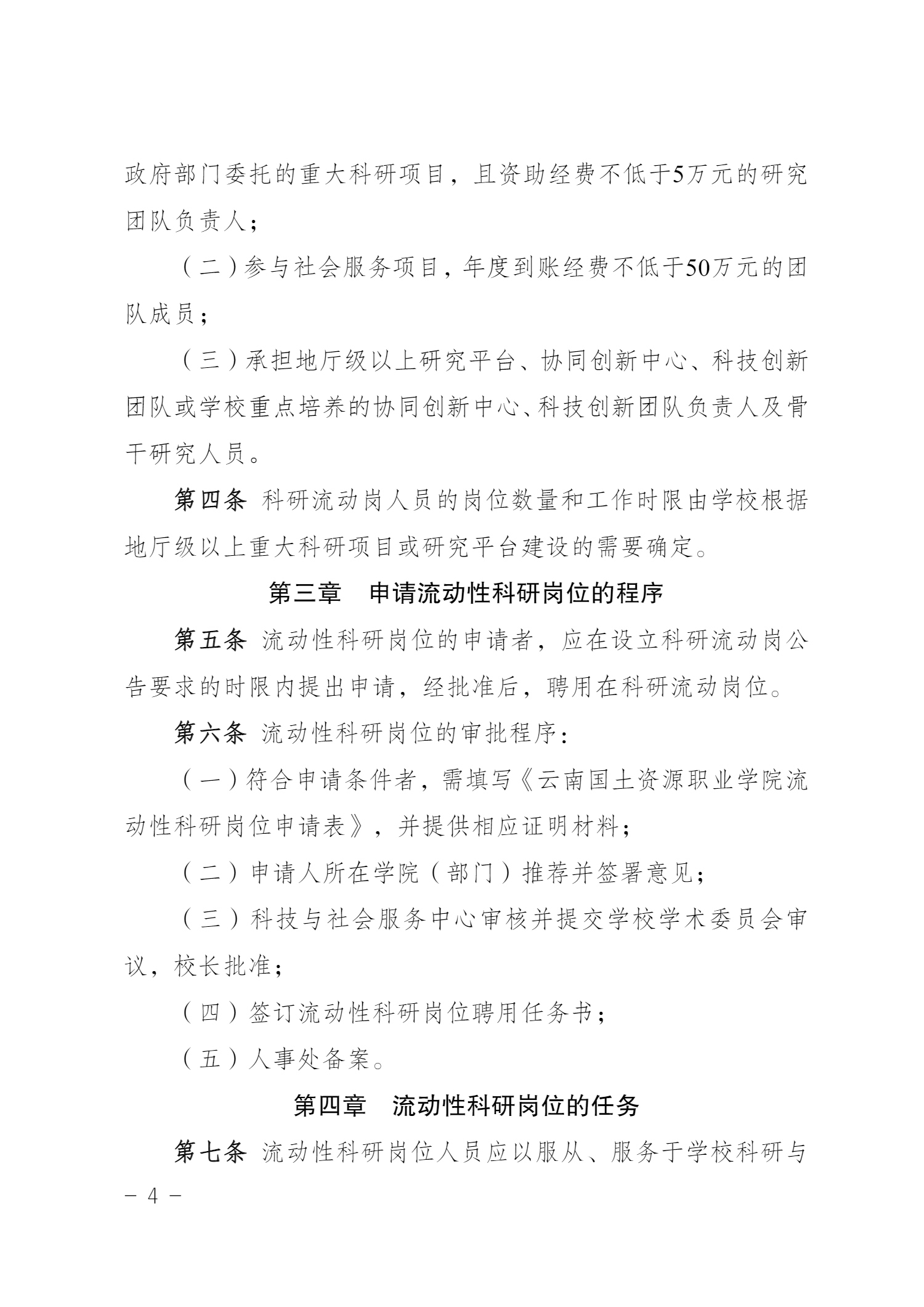 云南国土资源职业学院 流动性科研岗位设置与管理办法(试行)